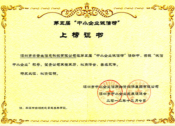 深圳市高新技術(shù)產(chǎn)業(yè)協(xié)會(huì)會(huì)員證書