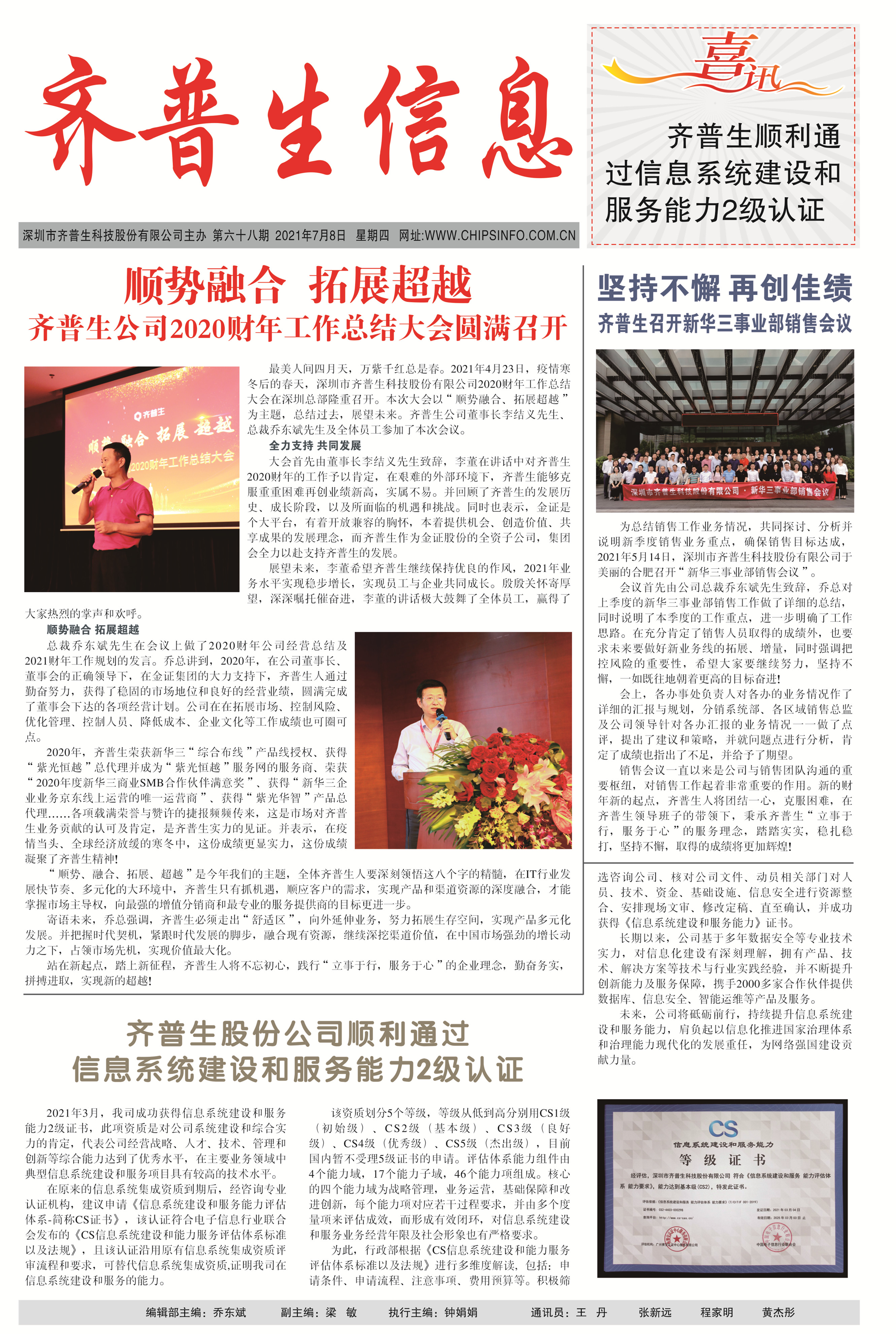齊普生股份公司順利通過(guò)信息系統(tǒng)建設(shè)和服務(wù)能力2級(jí)認(rèn)證